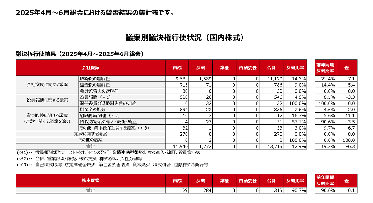 なお、議決権行使にあたっては、形式的に判断するのではなく、投資先企業との建設的な対話を踏まえ、企業価値向上の観点から判断を行います。